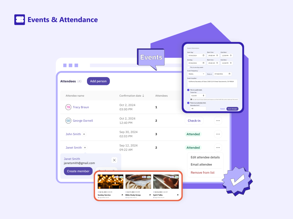 Gracely | N/A | Gracely is a church management software designed to streamline administrative tasks, manage member data, track attendance, organize events, and enhance engagement. It features a simplified interface and robust security features, and is presented as an ideal solution for any church looking to manage its operations more effectively. | $29 per month | |
