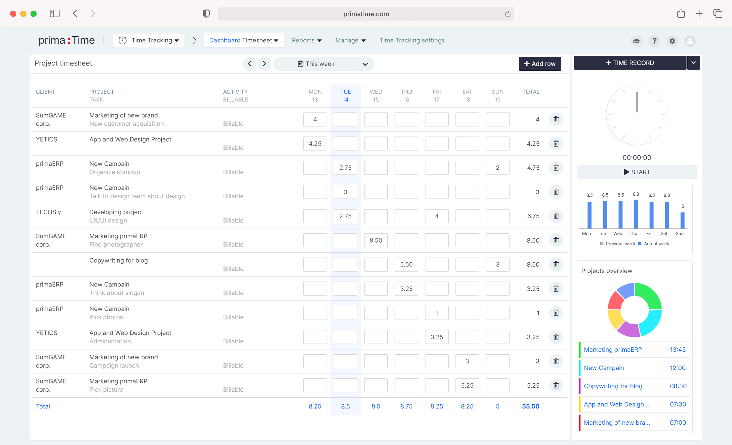 primaTime | N/A | The primaTime app helps increase productivity by tracking the time that teams spend on daily tasks, analyzing performance and billing activities. Users can set differentiated hourly rates to projects, clients or tasks and create invoices based on previously recorded time entries. The app was recently face-lifted, which included not only adding many new helpful features but also changing our logo and the name to "primaTime". | N/A |
