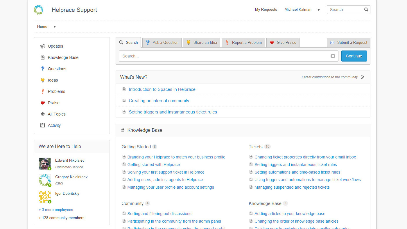 Helprace | Small Businesses (1-50 employees) | Helprace is customer service software that combines a help desk, customer feedback community and a knowledge base in one platform. Key features include email integration, ticket productivity tools and a feedback widget. The vendor offers crowd-sourced support as well as on-on-one support in one software. | $0 Per User per Month | |
