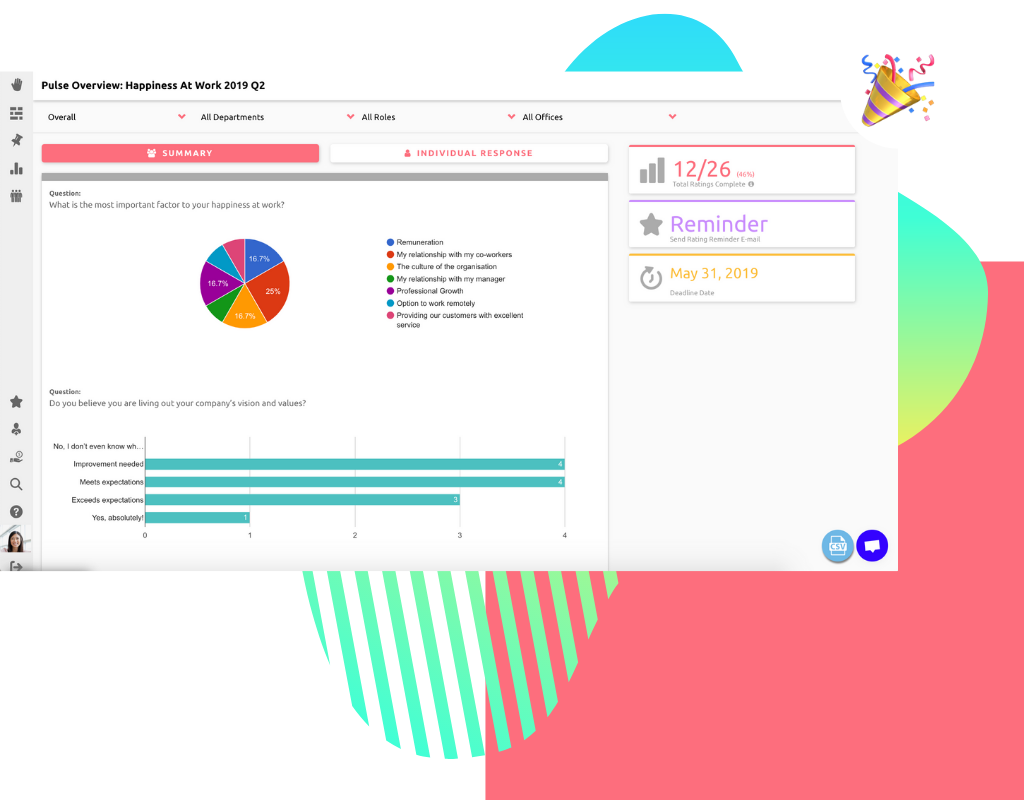Hi5 | N/A | Unlock company culture with ongoing recognition and feedback. Hi5 is designed to make it easier for people to manage people. It is a cloud solution that enables employees within companies to recognise and rate each other to free up management and HR teams from laborious admin. Hi5 measures Appreciation, Goals, Culture and Happiness by allowing employees to give continuous feedback. As employees give recognition and show appreciation to other team members,… | $3 per user per month | |