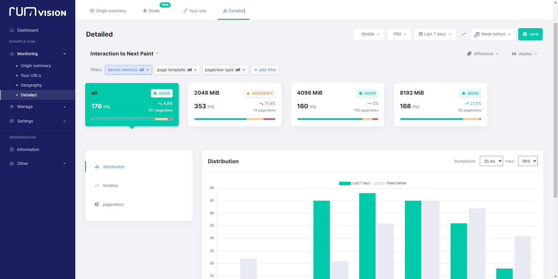 RUMvision | N/A | Non-delayed UX data of visitors. Agencies and merchants are using Real User Monitoring (RUM) to know pagespeed gains from deploys, spot issues, and improve their website or shop's SEO, bounce and revenue. Extra metrics and dimensions based on Core Web Vitals (https://www.rumvision.com/sitespeed-user-experience/_ How does device capability… | $95 Monthly or annual (10% off) Based on number of domains |