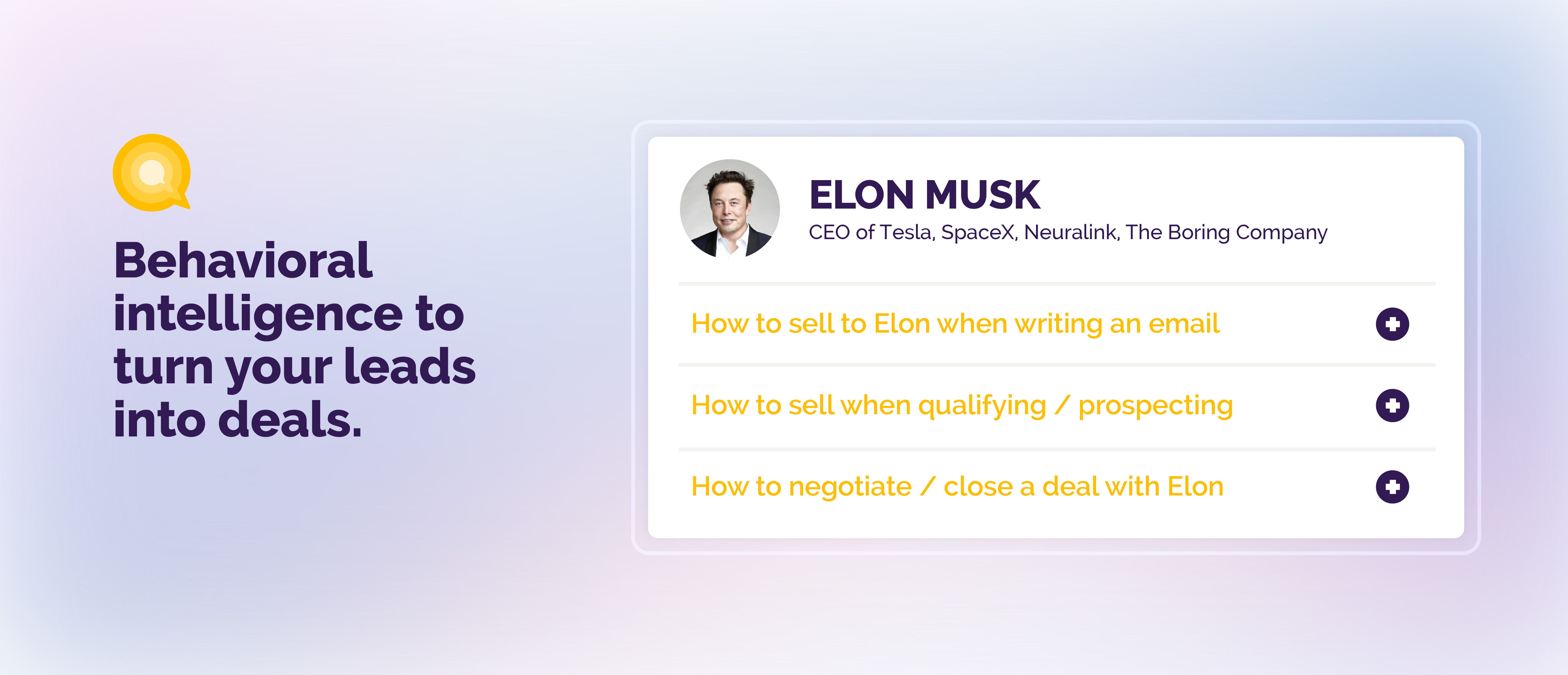 Humantic AI | N/A | Humantic AI's buyer intelligence platform combines ML & AI with Neuroscience, Linguistics and the transformational technology behind ChatGPT. | $90 per month per user | |
