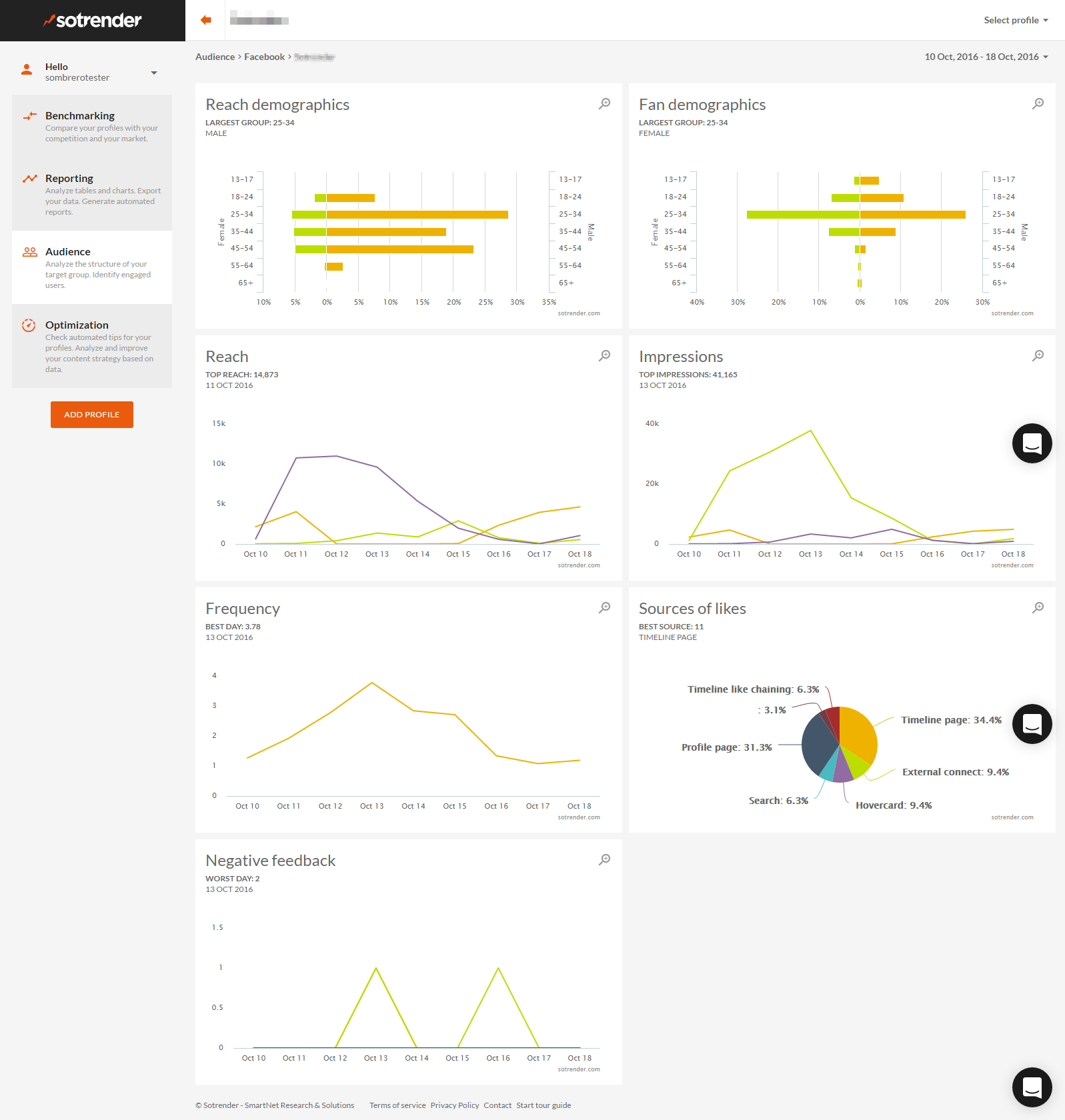 Sotrender | N/A | Sotrender uses big data to help marketing and sales professionals make better decisions in social media. The vendor says they provide users with multiple solutions to analyze and optimize performance in social media, especially on Facebook, Twitter, Instagram, and YouTube, as well as to check results against the competition and to execute decisions into practice. | $69 per month |