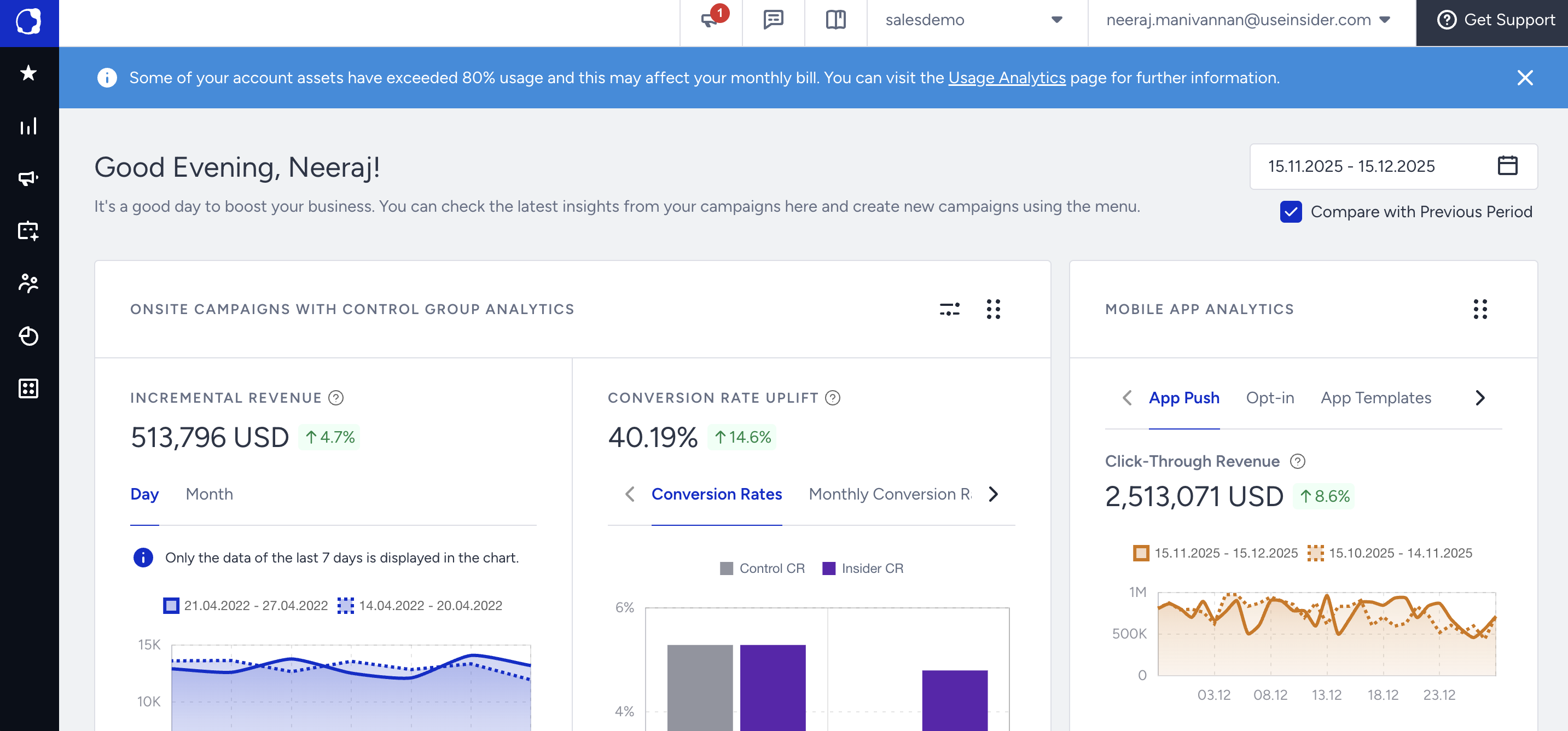 Insider One | Mid-Size Companies (51-1,000 employees) | The Insider One platform offers marketing and customer engagement teams an integrated Customer Data Platform (CDP). Insider One unites data, personalization, and journey orchestration across a set of natively supported channels, including WhatsApp, SMS, Email, Web, App, and Site Search. Insider One's capabilities for marketing and customer engagement teams include Customer Data Management, Cross-Channel Journey Orchestration, and Personalization. The platform boasts users among… | N/A | |