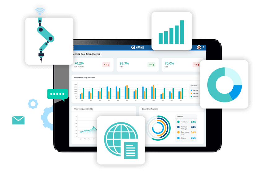 Janus Data Capture | N/A | Janus Data Capture is an Automated Shop-floor data capture system that enables organisations to create efficiencies and remove ineffective steps within the production processes. It gives organisations visibility into the manufacturing processes. Its live monitoring and analysis of data help organisations gain productivity. Streamlined data capture processes minimise data entry errors and reduce admin costs. Janus provides traceability with complete tracking of manufacturing processes. Janus’… | N/A | |