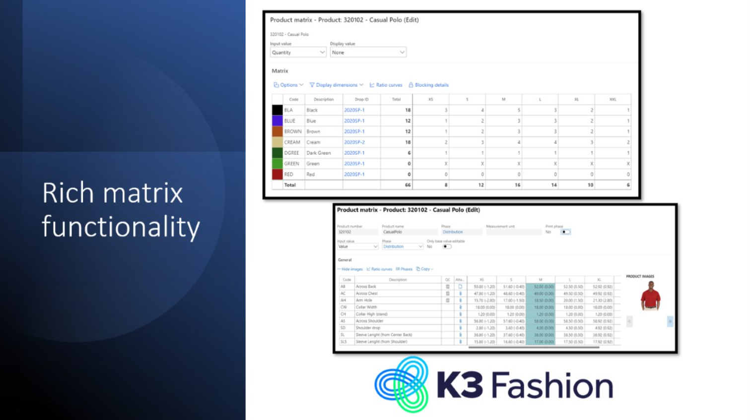 K3 Fashion | N/A | K3 Fashion supports fashion businesses with all aspects of operations, such as planning, design, sourcing, purchasing, logistics, warehousing, and finance. Fully embedded in Dynamics 365 Finance, Supply Chain Management and Commerce, K3 Fashion presents a single solution to remove technical blockers, unify data sources and maximise margins. Why K3 Fashion for brands? · Handles inventory, merchandising, assortment, range, and retail planning · … | N/A |