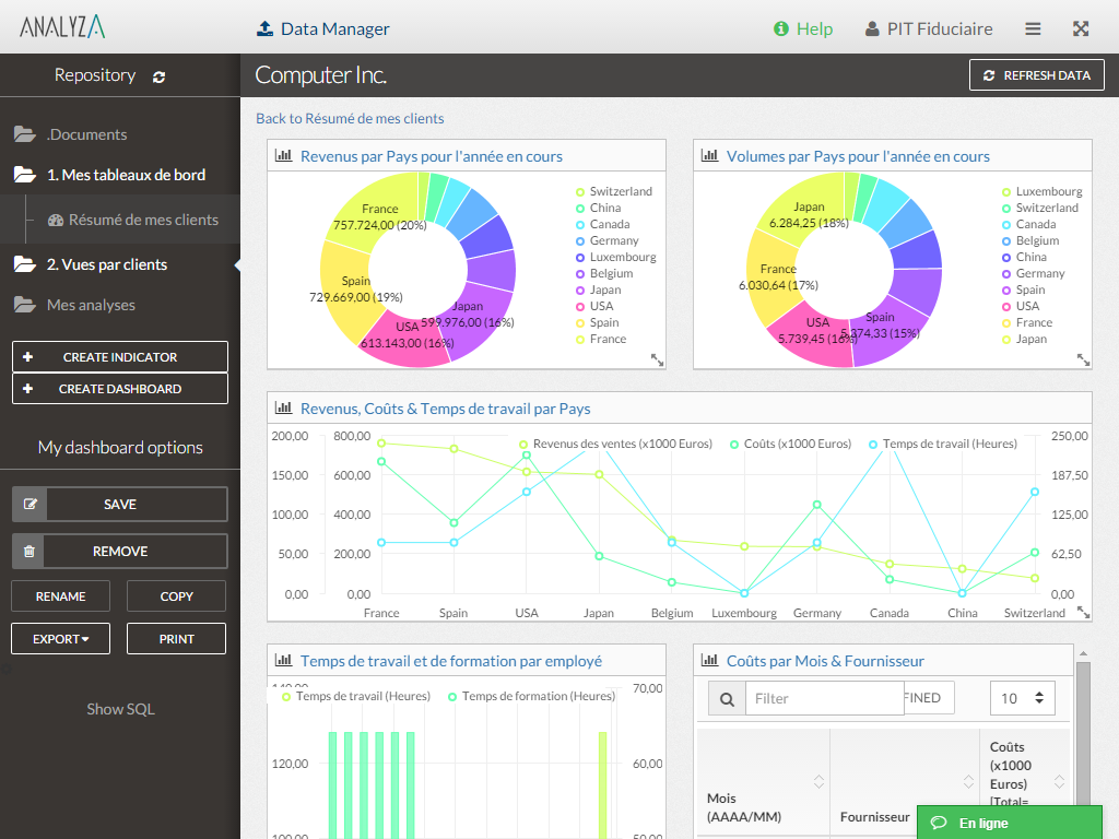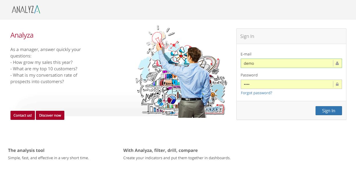 Spoom | Mid-Size Companies (51-1,000 employees) | Spoom (formerly Analyza) is a business intelligence solution that is provided by Spoom Software (formerly PIT Business). The vendor provides support services in Luxembourg, Belgium, France, and other parts of Europe. Spoom allows users to: Build several indicators and dashboards Build ad-hoc analysis without IT knowledge Navigate through data via drill-down and filtering Schedule reports and send results by mail or to external… | N/A |