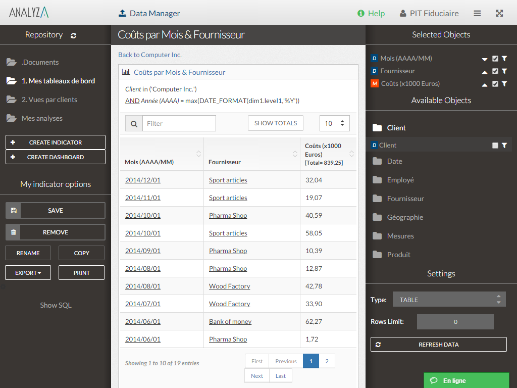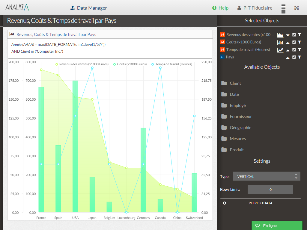 | Additional Details | — | The On-Premise or SaaS solutions are the same price; we provide a dedicated machine or virtual machine for both. For 10 users, the budget is from $15,000 to $90,000 for a full Business Intelligence solution (including licenses and maintenance for 3 years). The installation and configuration cost depends on customer's data architecture, volume and number of sources. It also depends on customizations required (i.e.: exporting pixel to pixel PDF files to a SharePoint platform). | ||||||||||||||