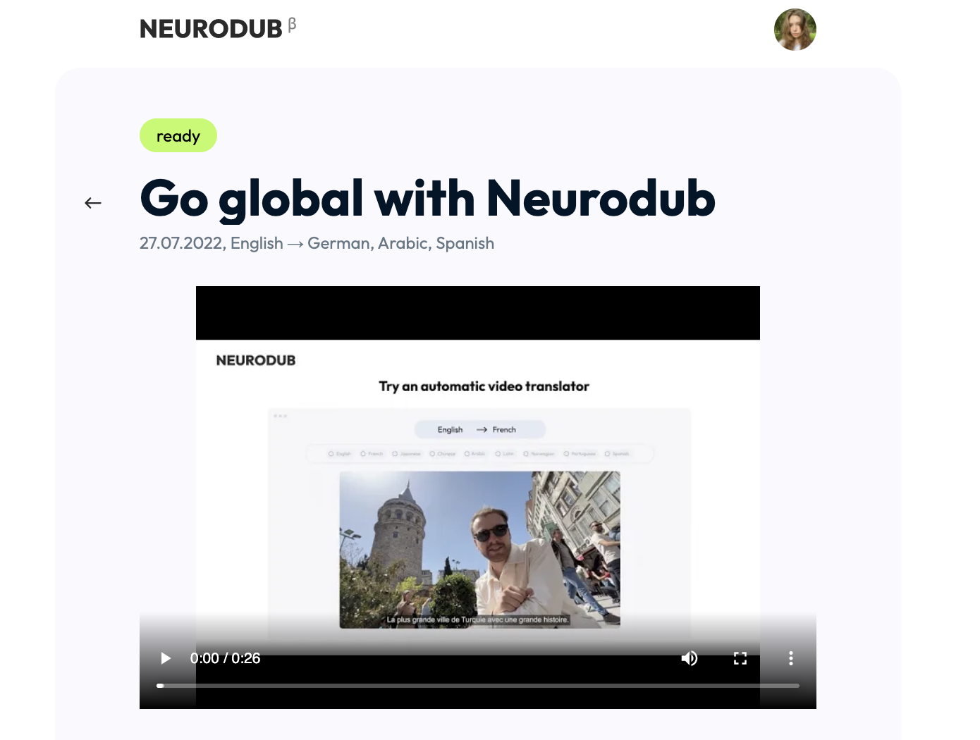Neurodub | N/A | Neurodub is an AI-based service that does professional video translation, subtitles, and dubbing. Neurodub translates videos into 60+ languages for businesses, bloggers, educational services, and anyone who wants to enter the global market. To reduce translation and localization costs while maintaining quality, Neurodub combines AI technology with human translation. Trained on large volumes of data, its neural networks make it possible for Neurodub to translate human speech more… | $0 |