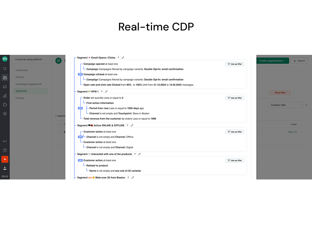 Maestra | N/A | Maestra is a marketing platform for DTC brands that helps personalize beyond email & SMS to drive conversions. Its out of the box features include: Real‑time CDP: unified profiles, identity resolution, calculated/custom fields, and product feeds Omnichannel messaging: Email, SMS, MMS, RCS, push, messengers, chatbots, and ad-audience sync Site & App personalization: pop‑ups, stories, banners/bars, surveys, and other dynamic… | $2,990 per month (starting with 10k active customer profiles) | |