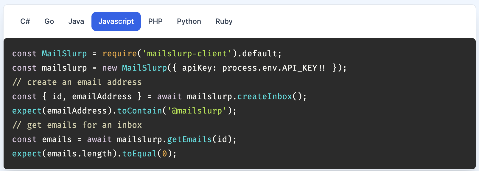 | ScreenShots | MailSlurp Screenshots |