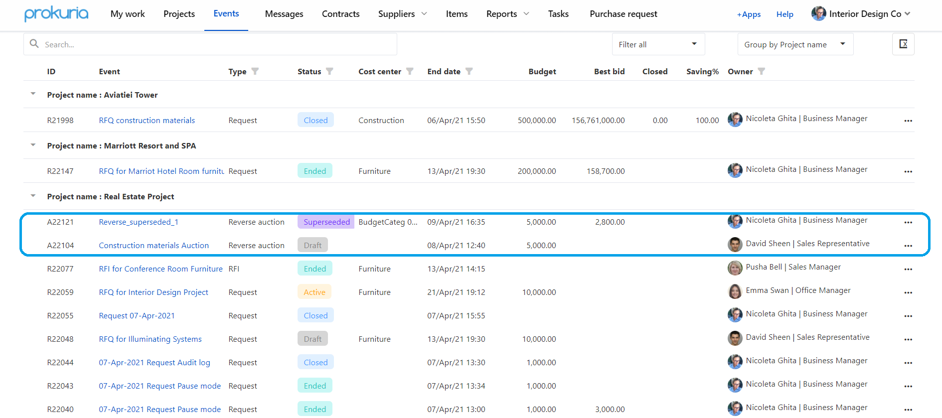 Prokuria | N/A | Prokuria is a cloud-based procurement platform, presented as easy to customize, fast-to-start and intuitive with a simple interface to drive greater adoption across departments. RFIs, RFPs, RFQs Streamline sourcing decisions with Prokuria's technology - digitized data and features such as: Sealed Bids, Message Center, Supplier Engagement Monitoring, Internal Collaboration, Smart Alerts & Reminders,… | $20 user/month |