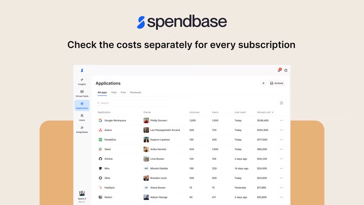 Spendbase | N/A | Spendbase is software designed to transform company SaaS spend management. Targeted at finance professionals and procurement managers seeking to optimize their budget and streamline purchasing processes, this software offers key features like SaaS expense tracking, vendor management, invoice control and software discounts. With performance-based pricing, teams can get started with Spendbase for free. | N/A |