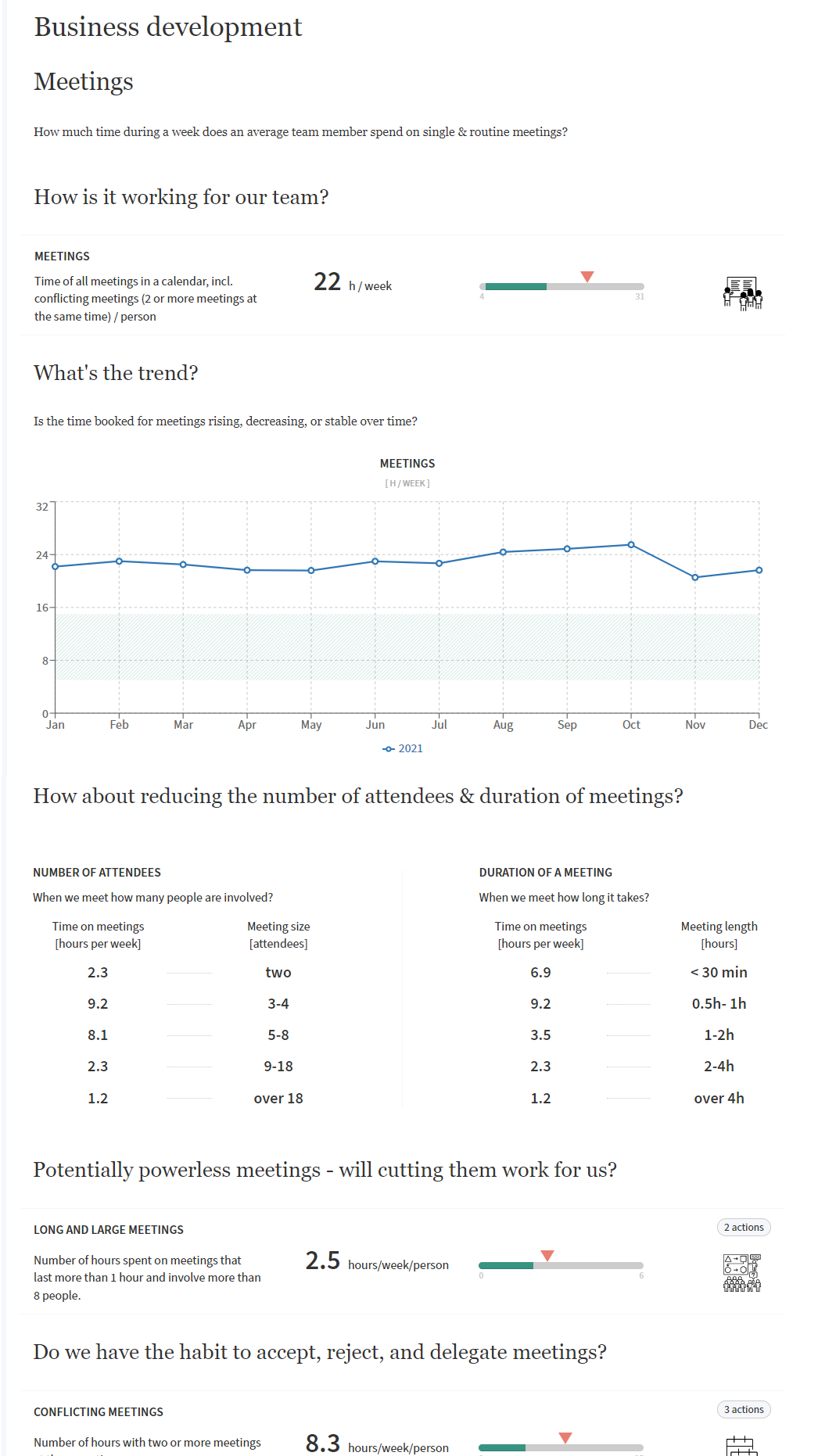 Network Perspective | Enterprise companies (1,001+ employees) | Network Perspective's platform is an analytical software giving leaders data with actionable insights about teams' collaboration habits to decrease workload and boost well-being in the new reality. The platform syncs with collaboration and communication tools (G-Suite, Jira, Slack etc.) and aims to analyze in an ethical, impactful way teams' work patterns across six dimensions: meetings, deep work, and context switching time, intra-team bonding, cross-team… | N/A | |