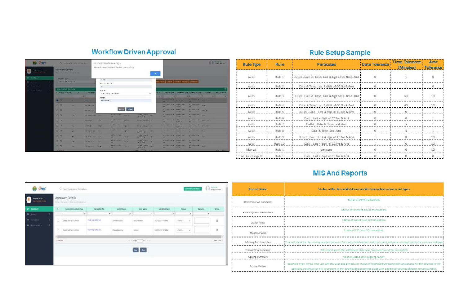 Onex Recon | Enterprise companies (1,001+ employees) | Onex Recon Platform supports the reconciliation process with a software-as-a-service web-based on-demand software service provided by the Onex Recon tool. Users can check and sanitize data with this tool. It offers AP, AR, trades reconciliation, credit card reconciliation, bank reconciliation, etc. | N/A | |