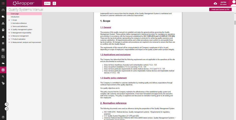 qmsWrapper | Small Businesses (1-50 employees) | qmsWrapper is an interconnected Quality Management Software for startups and small businesses. It helps all companies that want to increase productivity with ISO 9001:2015 and MedDev creators to achieve and manage ISO 13485:2016 and 21 CFR 820. Best for: 1. Companies who need guidance to implement and adopt validated QMS 2. Companies who want to automate their quality management and go beyond a paper-based system. A live demo is… | N/A |
