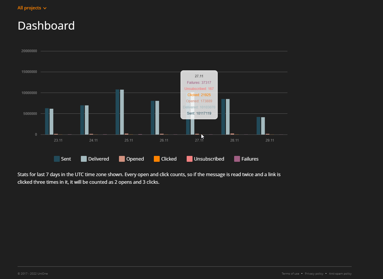 UniOne Email API | N/A | UniOne is created to let users send vast amounts of emails through API/SMTP at speed, boasting high deliverability and caring support. Designed for developers and marketers, UniOne deals with all transactional, trigger, and promo emails when integrated into CMS, CRM, CDP, or any other platform. UniOne is offered with: Free trial tariff with 6K emails per month 24/7 ready-to-help customer support Up to 10 000 000 outgoing emails per… | $0 per month |