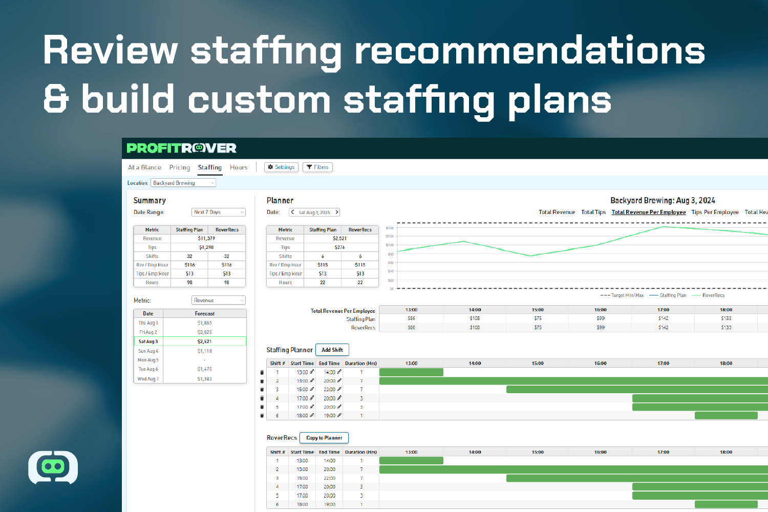 ProfitRover | N/A | ProfitRover helps business through data-driven insights,and provides staffing recommendations to reduce labor costs, pricing recommendations to increase revenues, and hours of operation recommendations to improve gross profits. ProfitRover studies data on merchant locations, products, and historical transactions to understand and predict customer buying and tipping behavior. It layers in external factors like weather and holidays to better understand how outside factors impact… | $50 per month per location | |