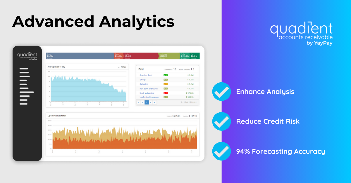 Quadient Accounts Receivable | N/A | Quadient Accounts Receivable, formerly YayPay but acquired by Quadient in 2020, is presented as a complete accounts receivable management platform that gives user's teams more time, more insight, and more control. | N/A | |