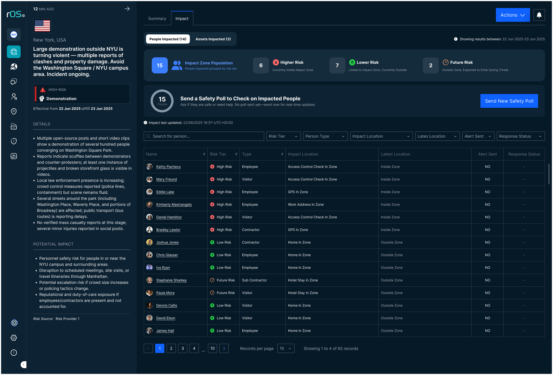 resilienceOS | N/A | Restrata provides an integrated platform for operational resilience and holistic people safety, resilienceOS, that unifies data from people, sites, and independent risk data providers to deliver real-time intelligence across global operations in one picture. Boasting users among enterprises in 50+ countries, resilienceOS helps organisations anticipate, respond to, and recover from disruptions faster. Whether managing travel risk, lone workers, or full-scale crisis… | N/A |