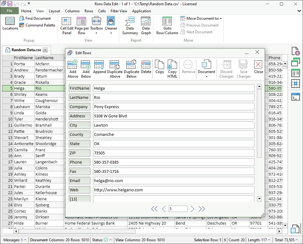 Rons Data Edit | Small Businesses (1-50 employees) | Rons Place Software in Halifax offers Rons Data Edit (replacing the former Rons CSV Editor). Part of Rons Data Gear, it is a CSV file editor that can open any format of separated text, including the standard comma and tab separated files (CSV and TSV), and allows total control over their content and structure. | $40 one-time fee | |