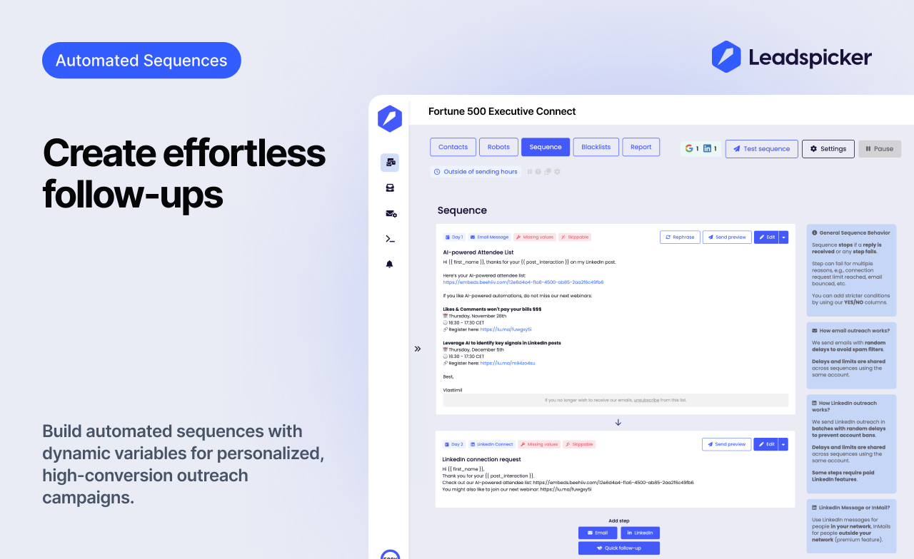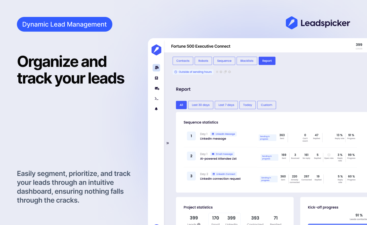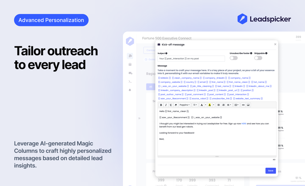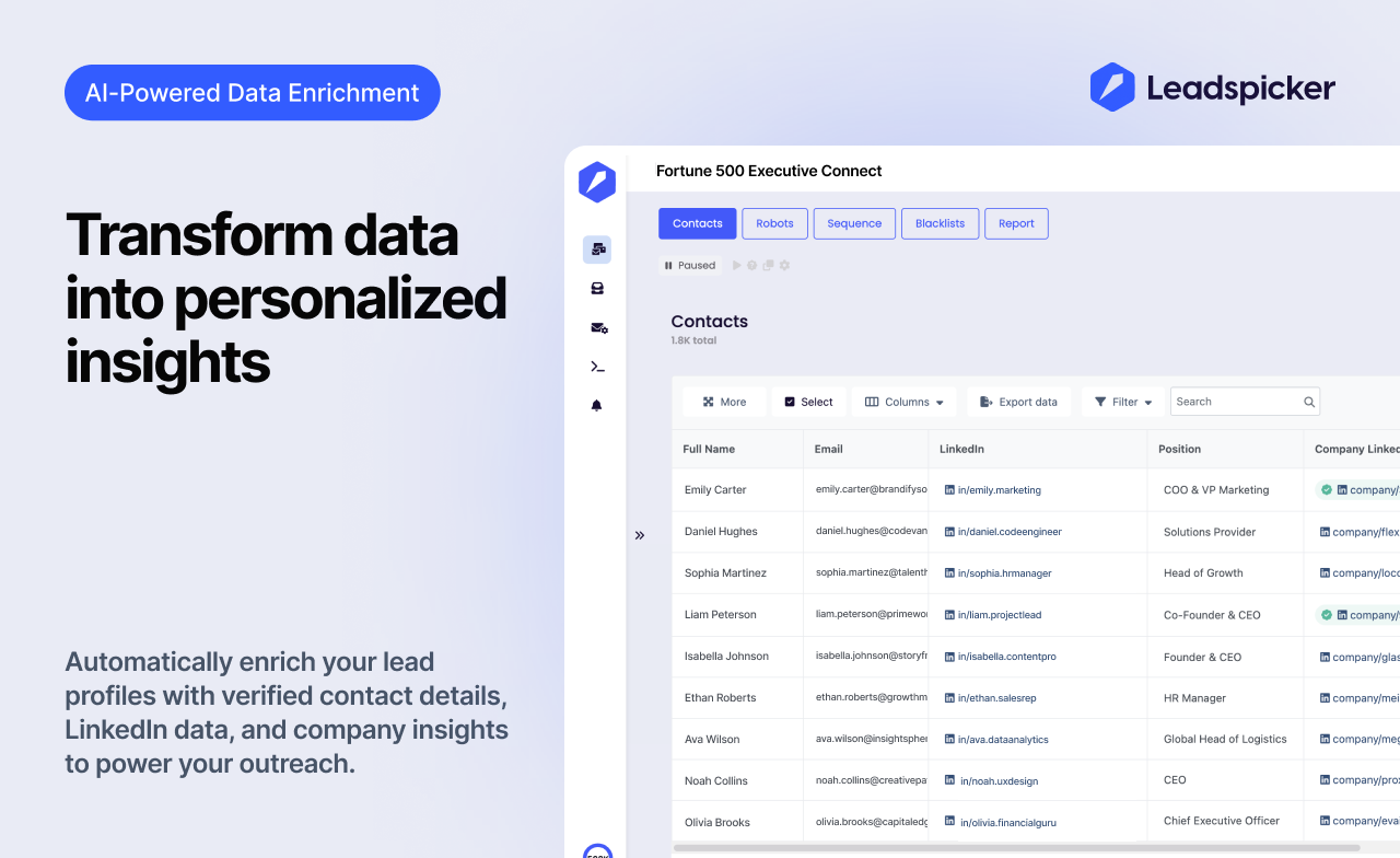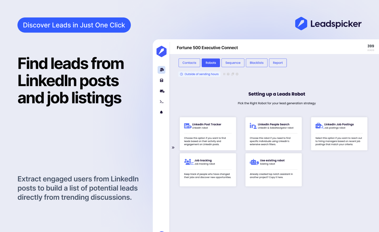 Leadspicker | N/A | Leadspicker is a SaaS B2B platform designed to transform lead generation and outreach through AI-driven automation. It simplifies the process of finding, enriching, and engaging leads, providing a solution for sales teams, recruiters, and marketing professionals. By combining automated workflows with advanced data enrichment and outreach tools, Leadspicker helps businesses save time and focus on building valuable relationships with prospects. Key… | $99 per month per user | |