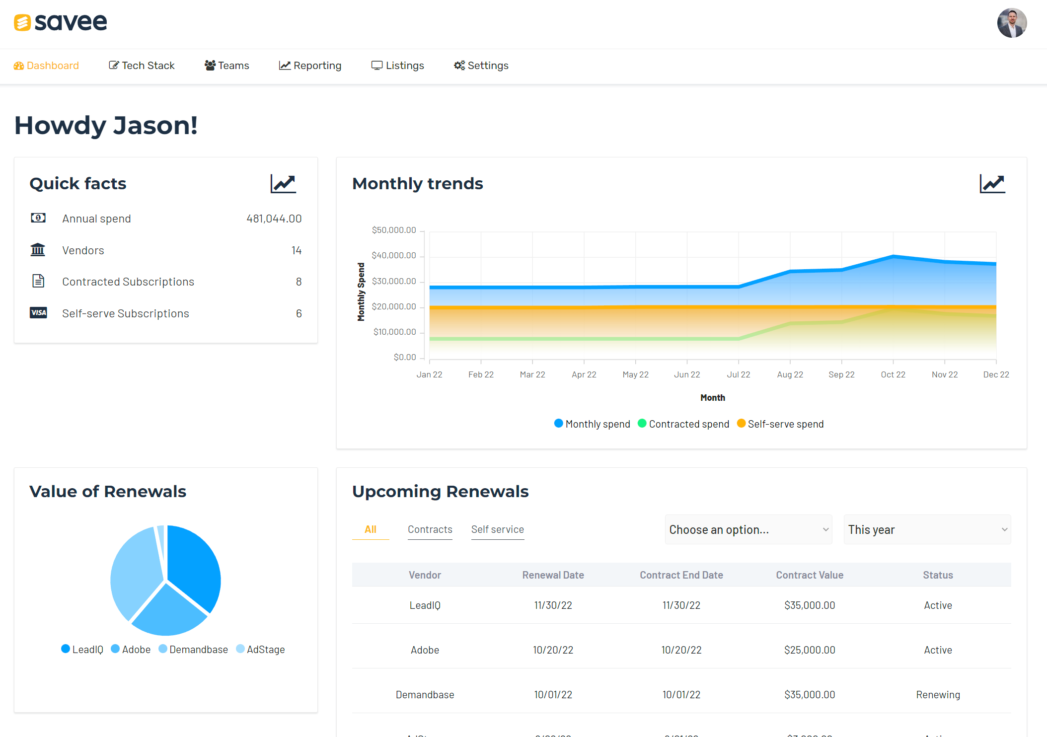 Savee | N/A | Savee is a VendorOS that helps businesses scale rapidly and efficiently, avoiding bloated technology footprints and unnecessary spending. It identifies vendor overlaps and potential compliance issues while uncovering cost savings and managing the approval and renewal processes. This helps business leaders scale rapidly and efficiently. Benefits of using Savee include: - Reduced spending on unnecessary technology products - Faster… | $99 per month | |