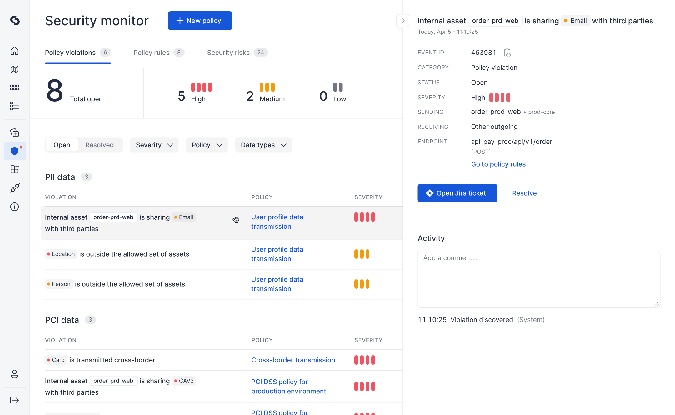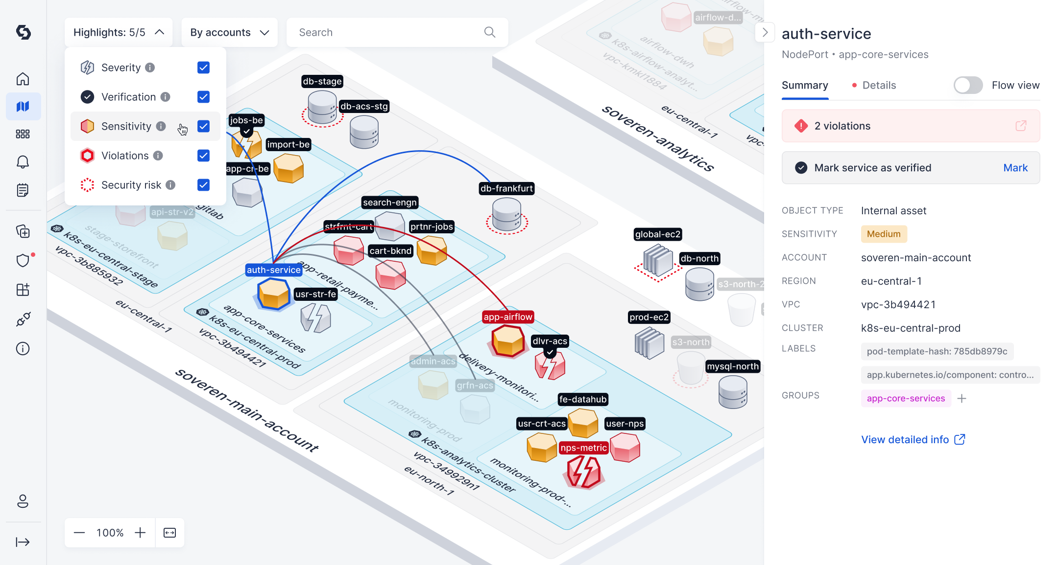 Soveren | N/A | Soveren helps identify and protect crown jewels in Kubernetes-based environments. It automatically discovers sensitive data and assets, mapping the flows between them and immediately alerting the user before risks become full-blown incidents. | $80,000 per year | |