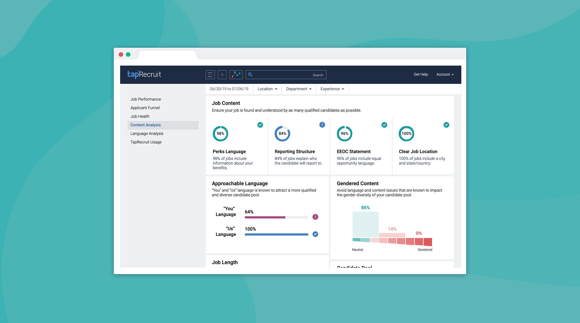 TapRecruit | N/A | The vendor states that TapRecruit's Job Description Software with Augmented Writing goes beyond gendered language to help hiring teams write job descriptions that are thoughtful, concise, and welcoming to candidates from every background. They further state that TapRecruit integrates with all major ATS, and that it includes reporting designed for recruiting teams. It is free to try. | N/A |