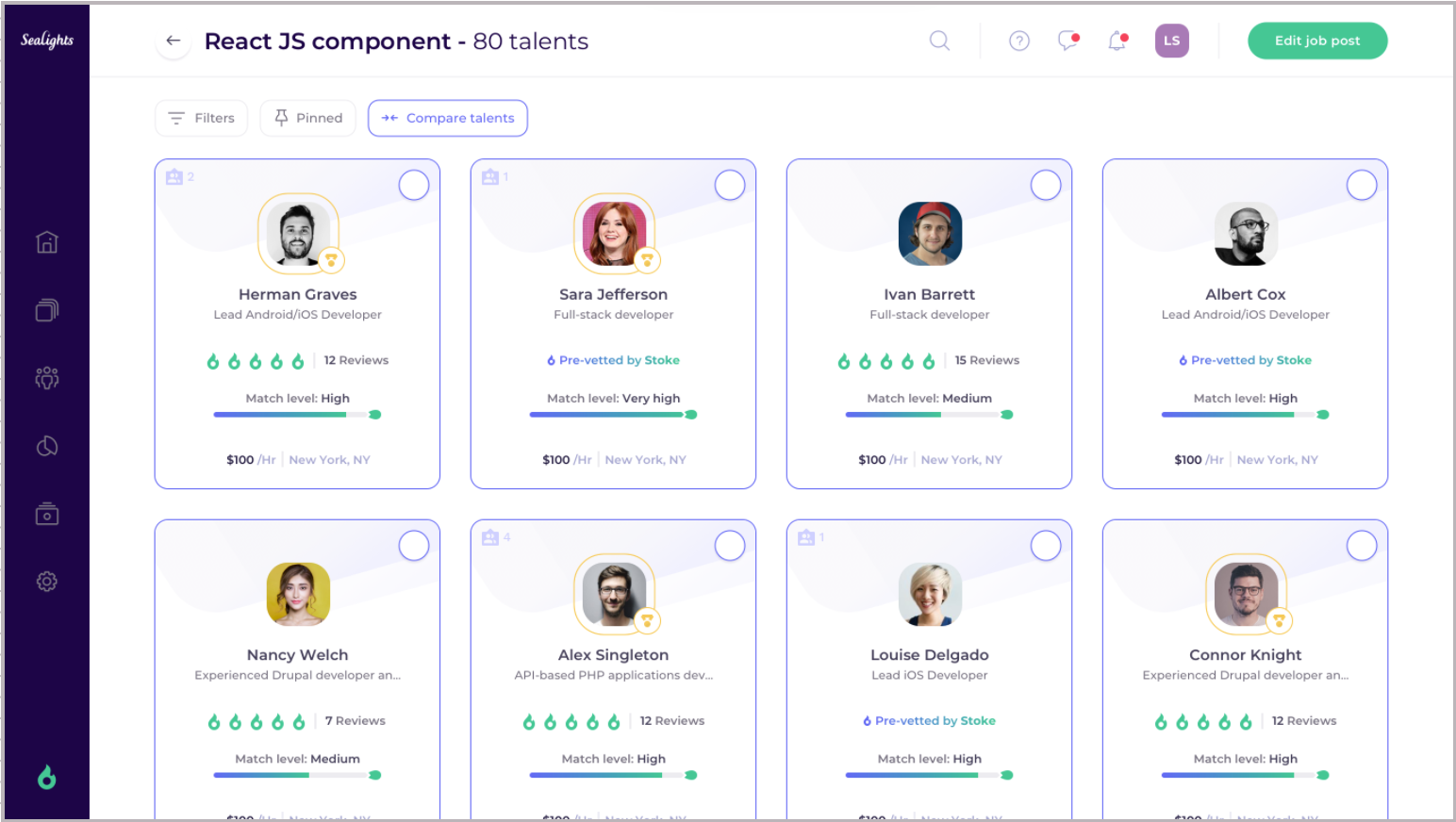 Stoke Talent | N/A | Stoke Talent is a freelance management system (FMS) designed to make it easy for companies to work with freelancers and contractors, by reducing the hassle of hiring, onboarding, tracking and managing invoices while ensuring full compliance and quick payment to your freelancers and contractors. It aims to simplify and streamline recruiting, on-boarding, payment, budgeting, compliance, data access and reporting to assure workforce visibility and compliance. Stoke will help unlock… | N/A | |