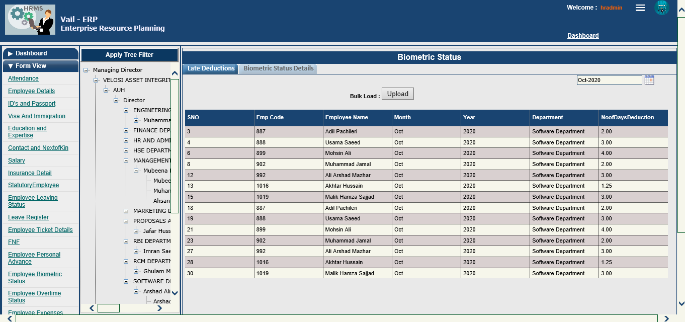 | ScreenShots | VAIL-HRMS (Human Resource Management System) Screenshots |