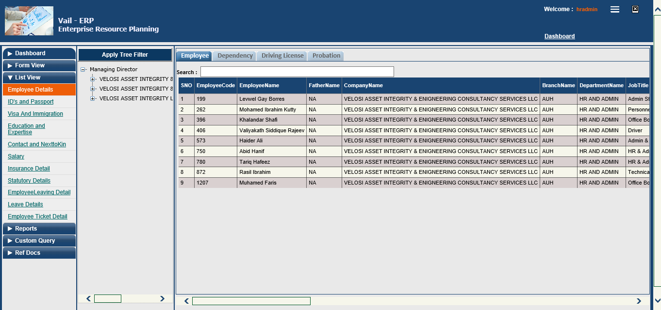 | Surfer | VAIL-HRMS (Human Resource Management System) | |
