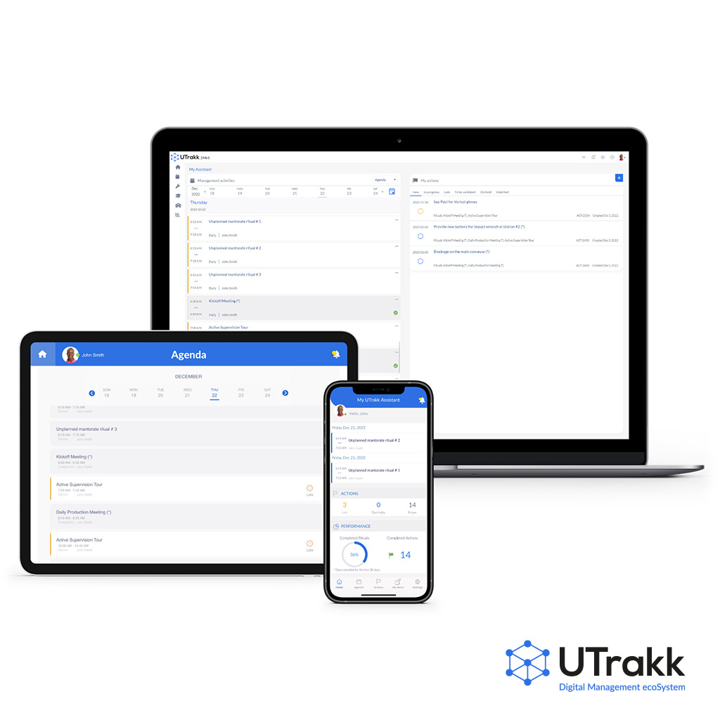 UTrakk | Mid-Size Companies (51-1,000 employees) | It's a digital tool for managers : task management, Gemba walks, team collaboration, KPI's, audit, coaching. UTrakk DMeS is a digital management ecoSystem that helps managers boost their impact in delivering their roles, with a focus on improving both competitive performance and employee experience. UTrakk DMeS digitalizes Proaction International's 17 years of expertise in continuous improvement, to bring organizations' management… | N/A |
