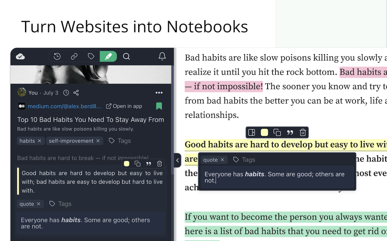 | Additional Details | — | Most of Web Highlights is free and can even be used without creating an account. More features are available to Premium or Ultimate plans to sync highlights to the cloud and access them in the webapp. | ||||||||||||||