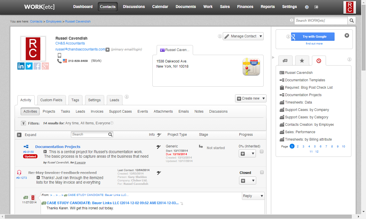 WORKetc is a cloud-based business management system. With integrated CRM, project management, billing, help desk, reporting, and collaboration, teams can access one system for all relevant information. The system supports popular third-party apps such as Google Workspace, Xero Accounting, Quickbooks Online, Outlook, Dropbox, and Evernote.