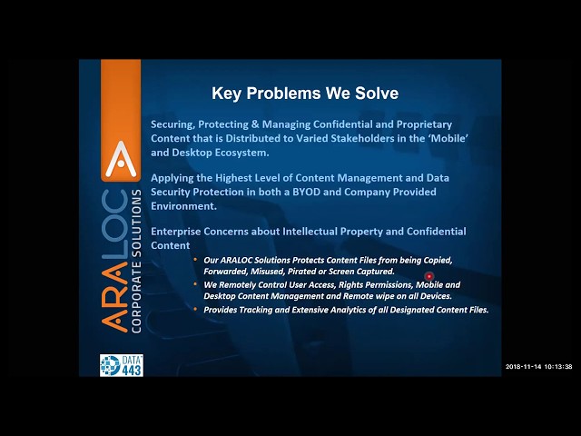 Therefore, if you have an organization primarily interested in distributing secure content directly to your stakeholders or employees located around the world at any time from any device then ARALOC provides a scalable solution that can grow along your business needs.
