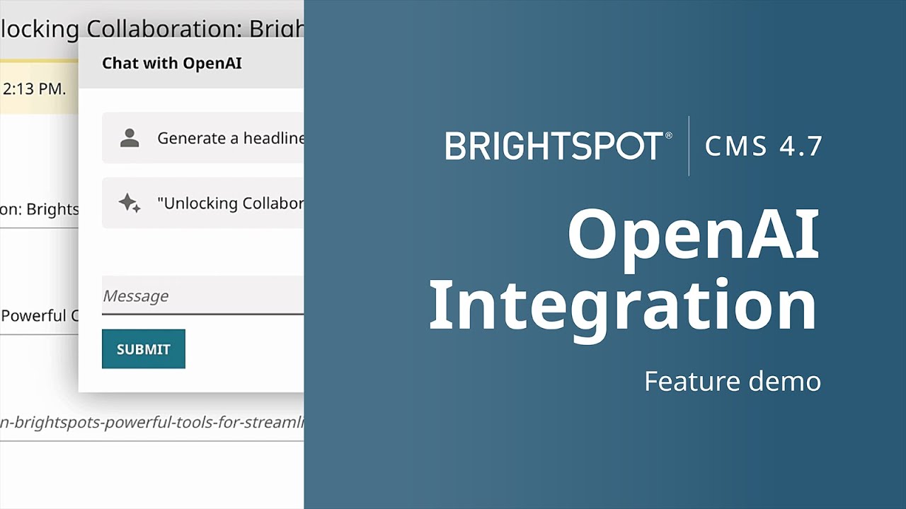 AI Integration: Brightspot's OpenAI integration empowers users to create and personalize content, or leverage AI-assisted suggestions for headlines, subheadlines and full body text right from the CMS.