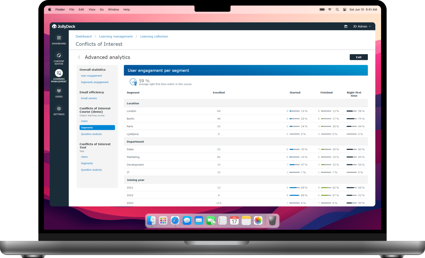 JollyDeck is an e-learning platform that empowers L&D teams to create and run modern e-learning faster. JollyDeck features two core environments - JollyDeck Create and JollyDeck LMS.