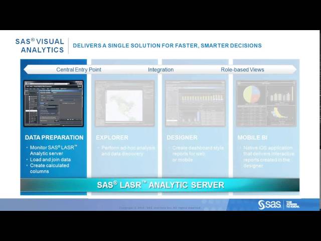 - SAS Visual Analytics also includes web-based self-service data preparation, text analytics, forecasting, pathing, prescriptive and descriptive analytics.