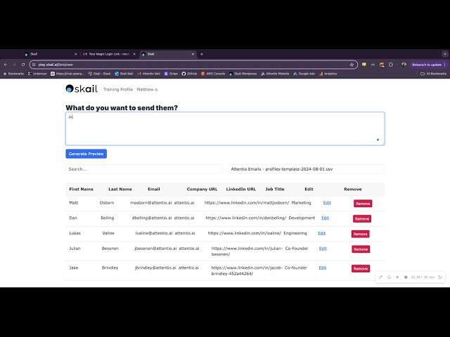Skail is an AI-powered tool for businesses and marketers, designed to automate and personalize email outreach. The technology behind Skail utilizes advanced natural language processing (NLP) and machine learning algorithms to mimic the user’s unique tone, writing style, and personality. This digital clone helps each email to seem authentic, allowing businesses to scale their outreach without sacrificing personal touch.