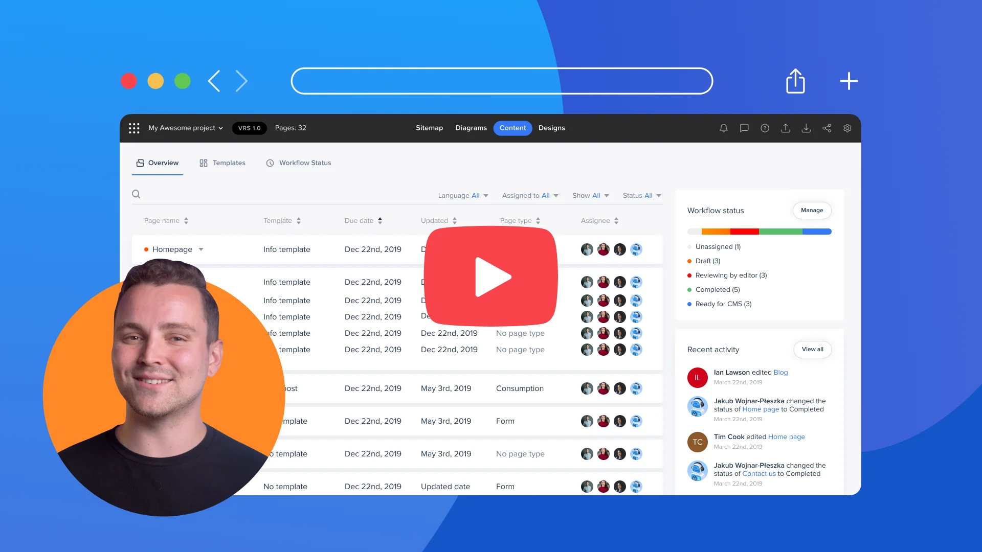 A connected workspace for website projects means faster client approvals and less developer rework, supported by clean, export-ready deliverables (XML, Word, PDF) and direct CMS integrations. Projects stay transparent with permission controls and version history that track every change.