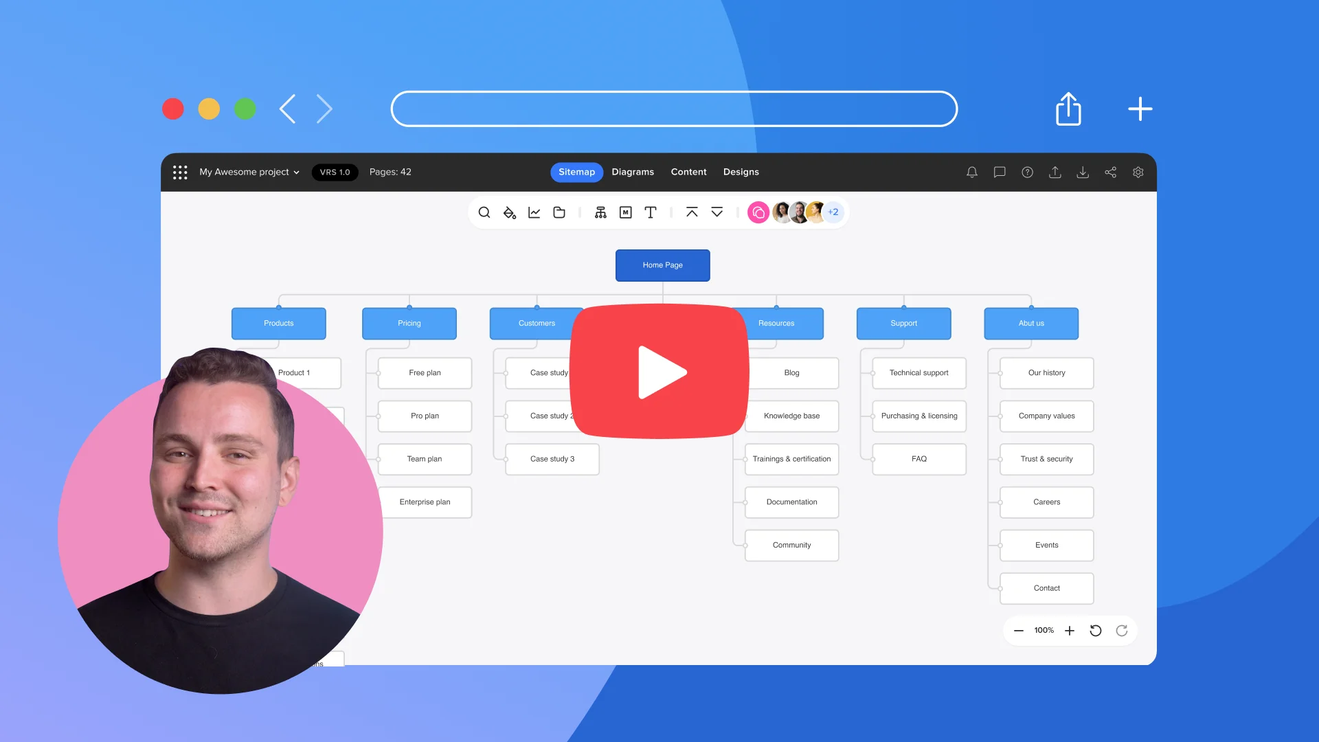 - Build navigation: visual sitemaps clarify information architecture, align stakeholders early and lock approvals. Use the AI sitemap assistant to generate and refine structures instantly or import architecture from an existing site or XML file.