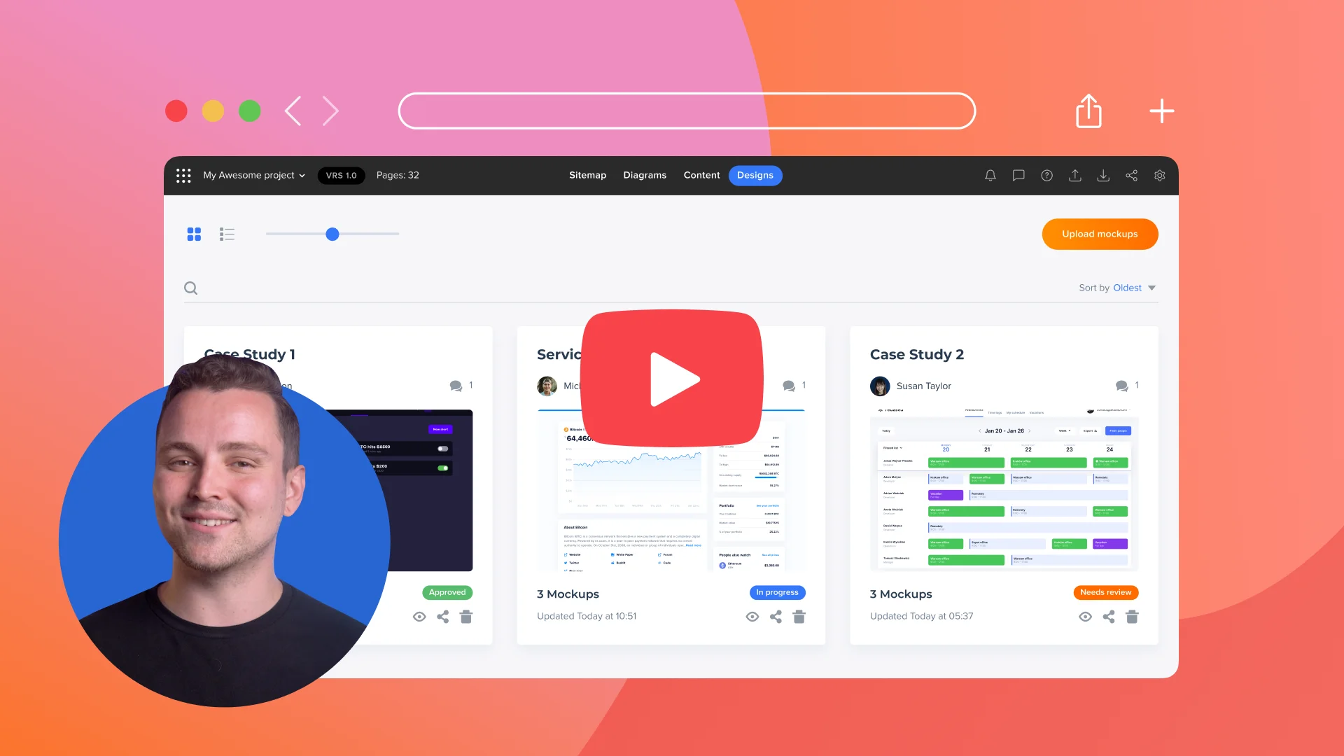 - Review designs in context: upload mockups or sync directly from Figma to leave pinpoint feedback tied to each page, keeping revisions organized and discussions focused.