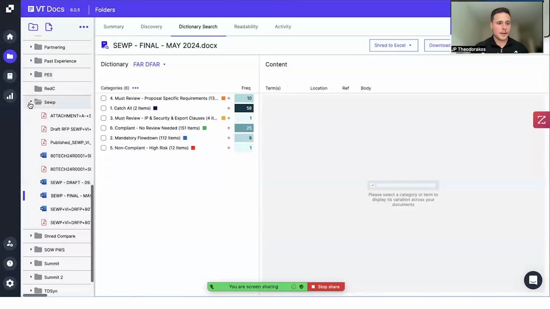 - Identifying Risky Compliance Requirements: Shred for compliance requirements such as FAR / DFARS – Extract flow downs, sensitive IP, export restrictions or security clauses
